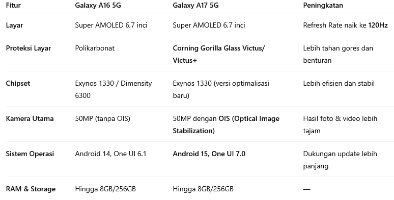 Perbandingan Spesifikasi: Samsung Galaxy A17 vs Galaxy A16