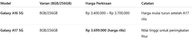 Sementara Galaxy A16 masih cukup layak untuk pengguna dengan budget ketat, Galaxy A17 adalah investasi yang lebih cerdas,baik untuk penggunaan harian, gaming ringan, maupun kebutuhan konten kreator.