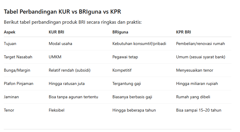 Tabel Perbandingan KUR vs BRIguna vs KPR